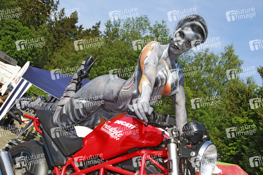 Bodypainting, Erotik, Frau, Mädchen, nackt, draußen, weiblich, Motorrag, Körperkunst, Kunst, Malerei, erotic, woman, girl, nude, outdoor, female, body art, body painting, motorbike, motorcycle
