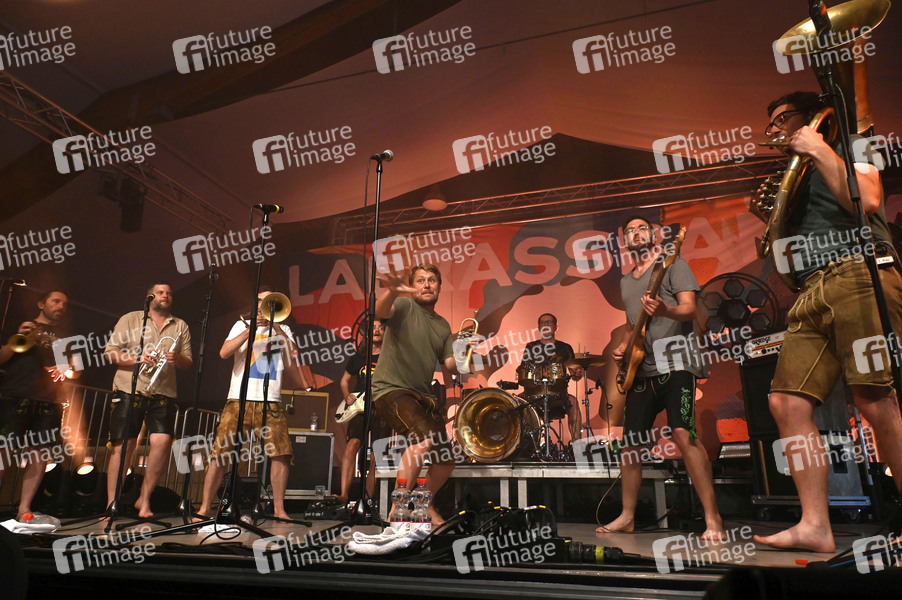LaBrassBanda live beim Festakt zum 100. Geburtstag vom SSV Eggenfelden in der Rottgauhalle. Eggenfelden, 17.06.2022
