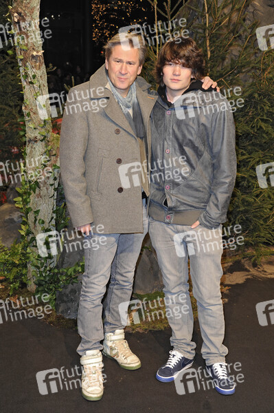 Actor Michael Kind and son Max arrive at the Berlin Premiere 'The Twilight Saga: Breaking Dawn - Part 1' at Cinestar Sony Center, November 18, 2011.