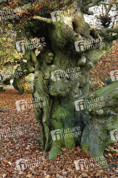 Nature Art: Herbstimpression des Bodyart-Künstlers Jörg Düsterwald mit Aktmodell Franziska im Dachtelfeld in Langenfeld.