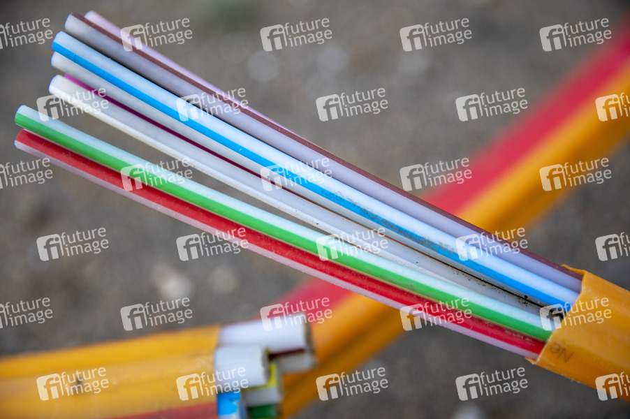Schnelles Netz, Daten-Höchstgeschwindigkeit, Breitbandkommunikation, Netzbetreiber, Infrastruktur, Äußerer Mantel, Stärke Mitglied, Coating, Cadding, Kern, Glaskern, Kupfer versus Glasfaser, schnelles Internet, Rückstreuung, Laserpulse, Datengeschwindigkeit, Datenfluss, Glasfasertechnologie, Datenübertragung, Glasfasernetz, Terrabit, Breitbandausbau, Lichtwellenleiter, dielektrische Wellenleiter, Quarzglas, Kunststoff, Glasfasern, Brechungsindex, polymere optische Faser, Übertragung, Energie, Laserstrahlung, Faseroptisch, Messgeräte, Hohe Reichweiten, Signalverstärkung, Polymethylmethacrylat, PMMA, Quarzglaskern, elektromagnetischer Strahlung, Multimodefaser, Gradientenindexfaser, Monomodefaser, fundamentale Materialeigenschaften, Bindungslänge, Unterflurarbeiten, Symbolfoto, Symbolbild