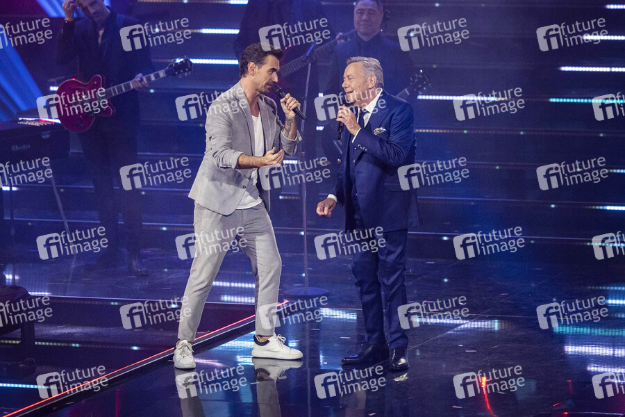 Florian Silbereisen und Roland Kaiser bei der Aufzeichnung der TV-Show 'Das grosse Schlagerjubiläum 2022 - Auf die nächsten 100!' im Studio 3 der Media City. Leipzig, 21.10.2022