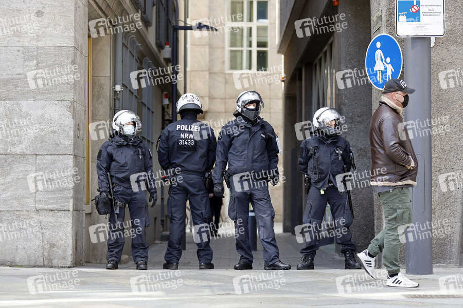Am Rande einer unangemeldete Demo von Kritikern der Corona-Maßnahmen vor dem Kölner Dom führten Polizei und Ordnungsamt zahlreiche Kontrollen auf Einhaltung der Corona-Maßnahmen wie Mindestabstand und Maskenpflicht durch. Ab Montag will NRW wegen der steigenden Inzidenzzahlen noch strengere Corona-Regeln anwenden. Köln, 27.03.2021