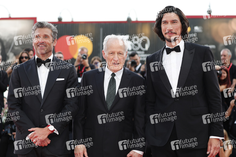 Patrick Dempsey, Michael Mann und Adam Driver bei der Premiere des Kinofilms 'Ferrari' auf der Biennale di Venezia 2023 / 80. Internationale Filmfestspiele von Venedig im Palazzo del Cinema. Venedig, 31.08.2023