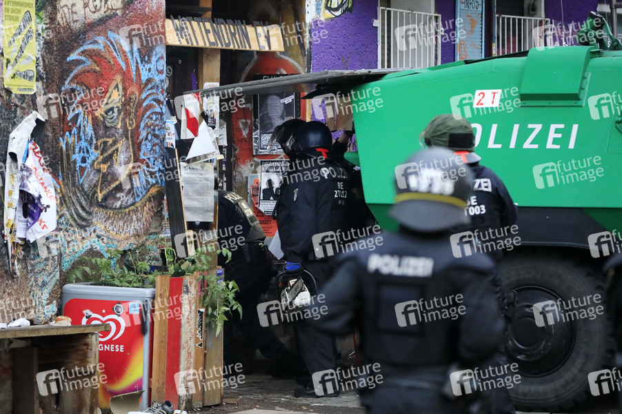 Die Berliner Polizei hat das Wohnprojekt Liebig34 in Berlin-Friedrichshain geräumt. Polizisten verschafften sich Zugang zu dem Haus führten nach und nach die Bewohnerinnen heraus. Die Berliner Polizei war mit 1500 Beamten im Einsatz. Vor dem Haus kam es zu Demonstrationen. Berlin, 09.10.2020