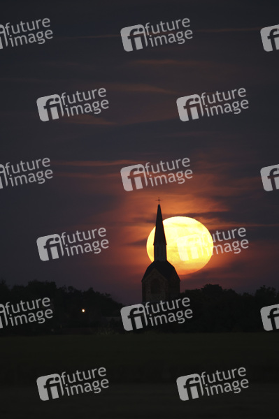 Vollmond hinter der Dorfkirche St. Anna und St. Katharina. Gütz, 14.06.2022