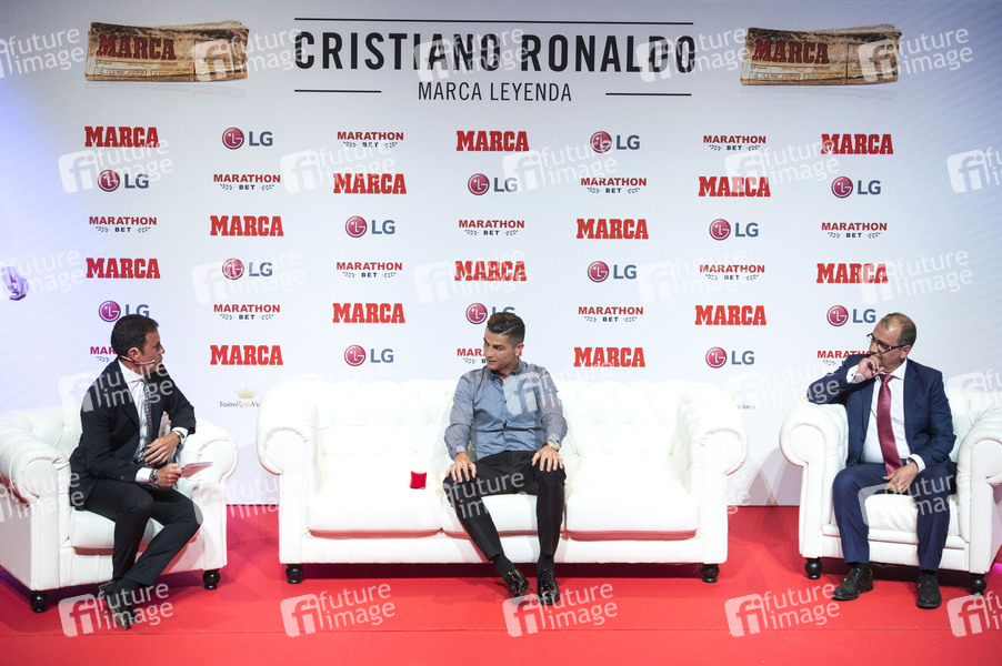 Cristiano Ronaldo mit Moderator bei der Verleihung Marca Leyenda Award im Teatro Reina Victoria. Madrid, 29.07.2019