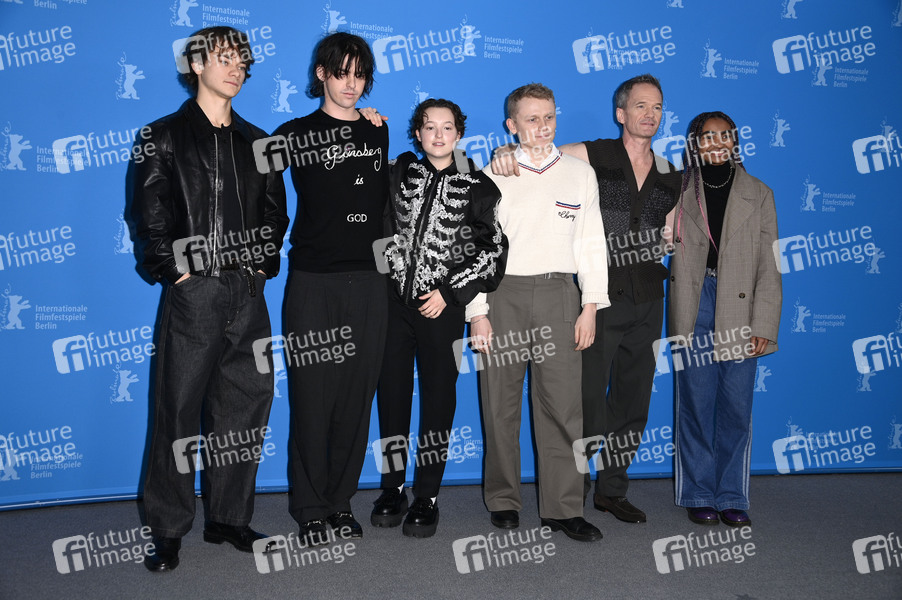 Conrad Khan, Earl Cave, Bella Ramsey, George Jaques, Neil Patrick Harris und Jasmine Elcock beim Photocall zum Kinofilm 'Sunny Dancer' auf der Berlinale 2026 / 76. Internationale Filmfestspiele Berlin im Hotel Grand Hyatt. Berlin, 13.02.2026