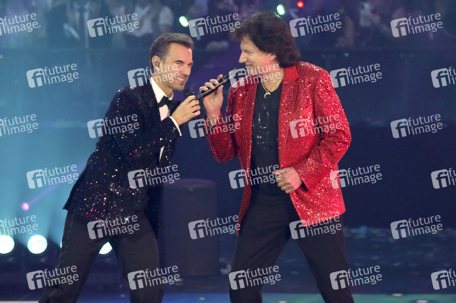 Florian Silbereisen und Olaf der Flipper in der TV-Show 'Silvester-Schlagerbooom 2026 live - Die Wunderlichtershow!' im BMW Park. München, 31.12.2025