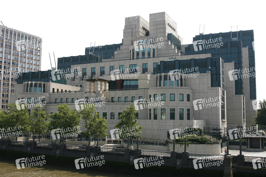 MI6 steht für 'Military Intelligence, Abteilung sechs', Secret Intelligence Service (SIS), britischer Auslandsgeheimdienst, James Bond Film Kulisse, Themse