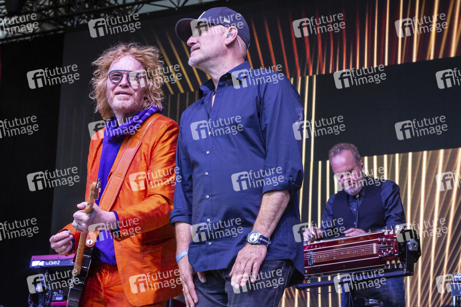 Christof Stein-Schneider, Kai Wingenfelder und Martin Huch von Fury in the Slaughterhouse live im Rahmen der Konzertreihe 'Back on Stage' auf der Gilde Parkbühne. Hannover, 12.06.2021