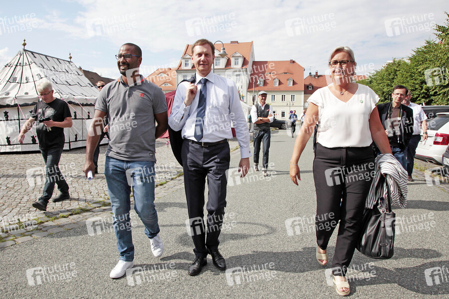 Cacau, Michael Kretschmer und Marion Prange beim 4. Ostritzer Friedensfest. Ostritz, 21.06.2019
