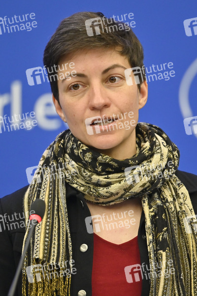 Ska Keller beim Pressebriefing der Fraktion Die Grünen/Europäische Freie Allianz im Europäischen Parlament. Straßburg, 05.04.2022