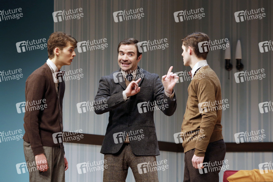 Sandro Lohmann, Mirko Lang und Lucas Reiber bei der Fotoprobe 'Eine ganz normale Familie' im Theater am Kurfuerstendamm. Berlin, 06.03.2013