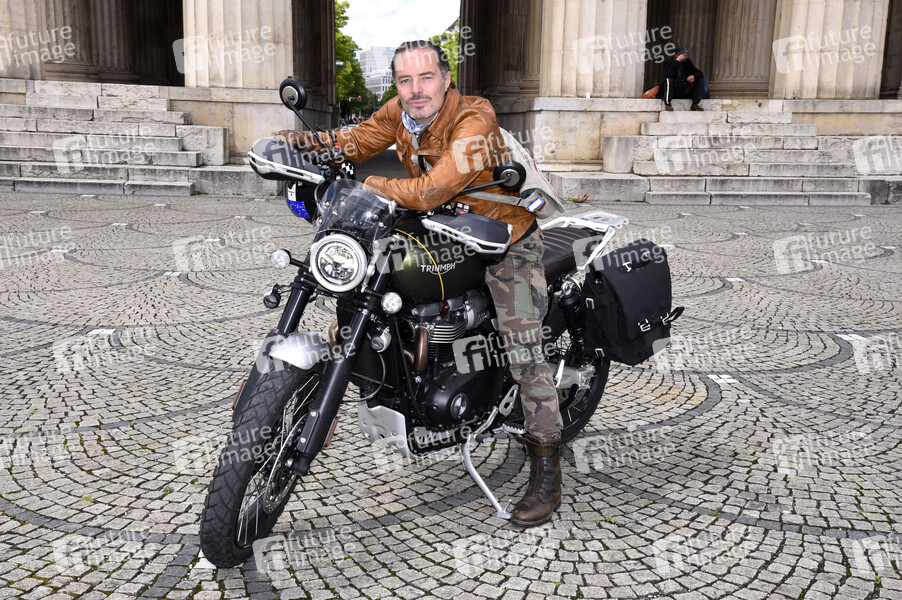 Schauspieler, Comedian, Erkan Maria Moosleitner, Erkan und Stefan, Motorrad, Triumph, Prominenz, Celebrity, Celebrities, Fotoshooting, Photoshooting, Fototermin, Unterhaltung, Entertainment