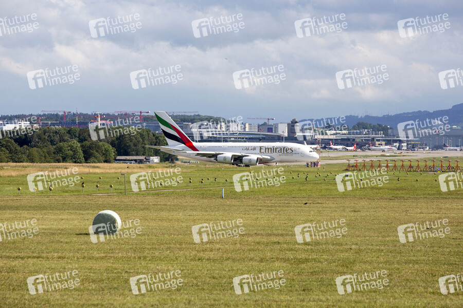 Emirates Airbus A380-800 beim Abflug vom Flughafen Zürich, 15.08.2019