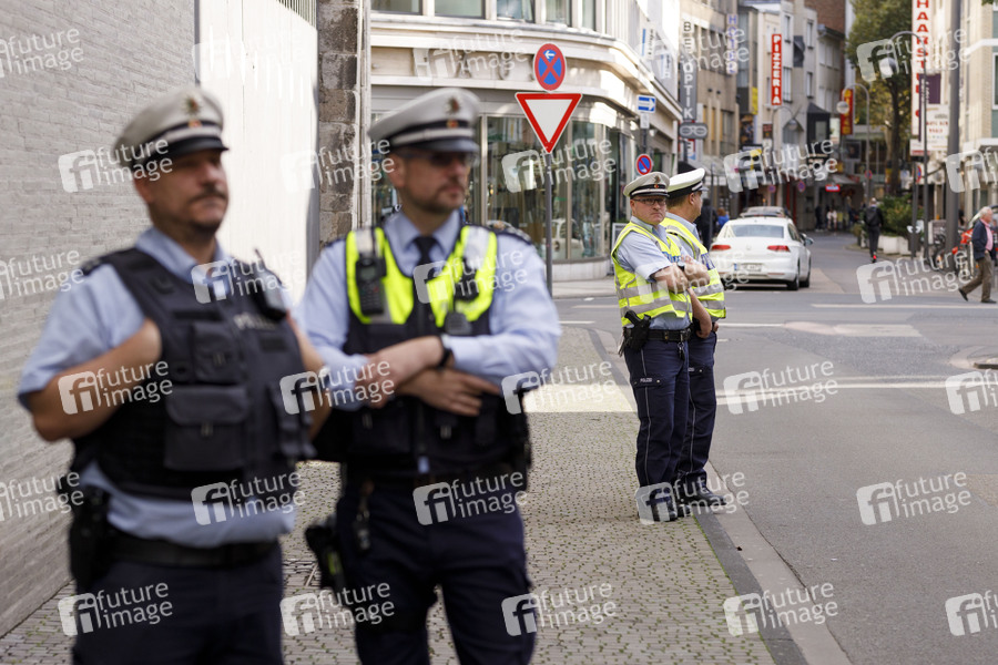 Polizei, Sicherheit, Polizeimaßnahme, Polizei-Maßnahme, Polizei-Eskorte, Personenschutz, Einsatzbelastung, Polizeischutz, Polizisten, Polizeipräsenz, Polizeiaufgebot, Kultur, Ausstellung, Exhibition, Museum, Kunstmuseum des Erzbistums Köln