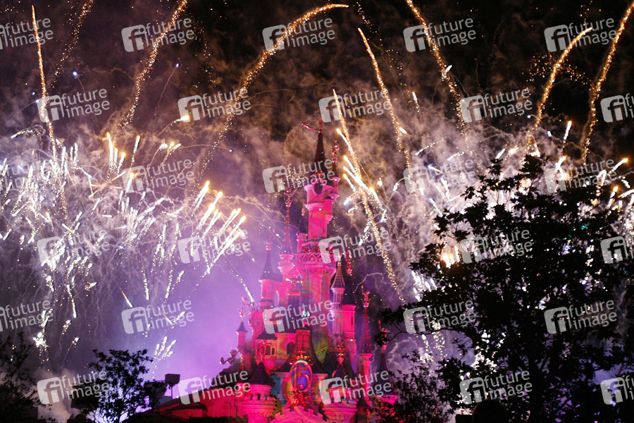 Feuerwerk am Sleeping Beauty Castle an der Central Plaza