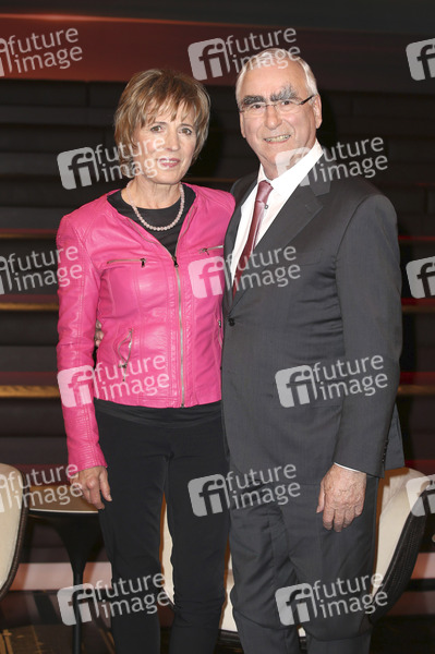 Irene Epple-Waigel mit Ehemann Theo Waigel bei der Aufzeichnung der ZDF-Talkshow 'Markus Lanz' im Fernsehmacher Studio auf dem Phoenixhof. Hamburg, 16.04.2019