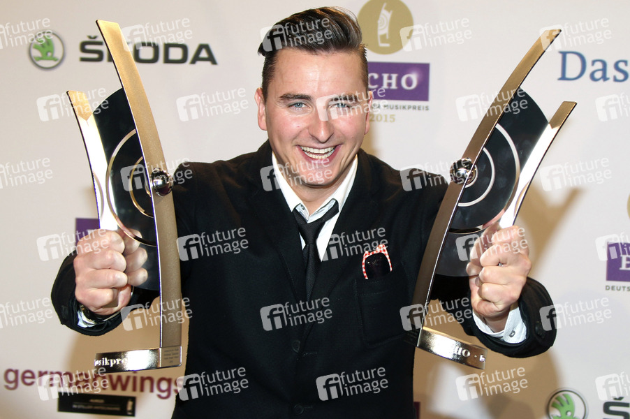 Andreas Gabalier mit den Echo in den Rubriken Volkstümliche Musik und Partner des Jahres bei der 24. Verleihung vom Musikpreis ECHO 2015 in der Messe Berlin im Palais am Funkturm. Berlin, 26.03.2015