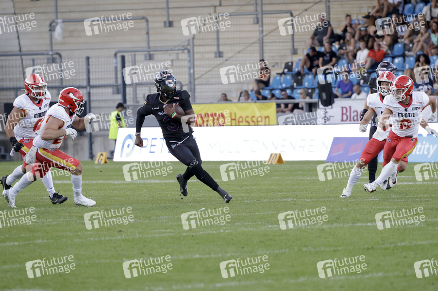 Matthew McKay (3) beim American Football-Spiel Frankfurt Galaxy gegen Madrid Bravos in der PSD Bank Arena Frankfurt. Frankfurt am Main, 10.08.2024