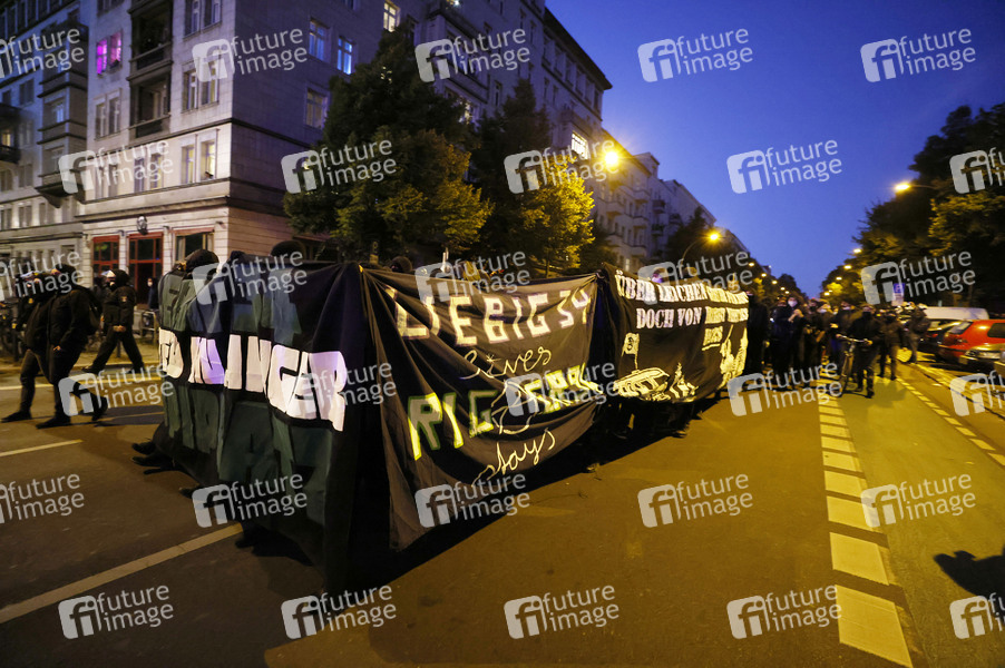 Demonstration gegen Räumung vom Wagencamp 'Köpi' von der Rigaer Straße zum Gelände des Camps an der Köpenicker Straße. Berlin, 09.10.2021