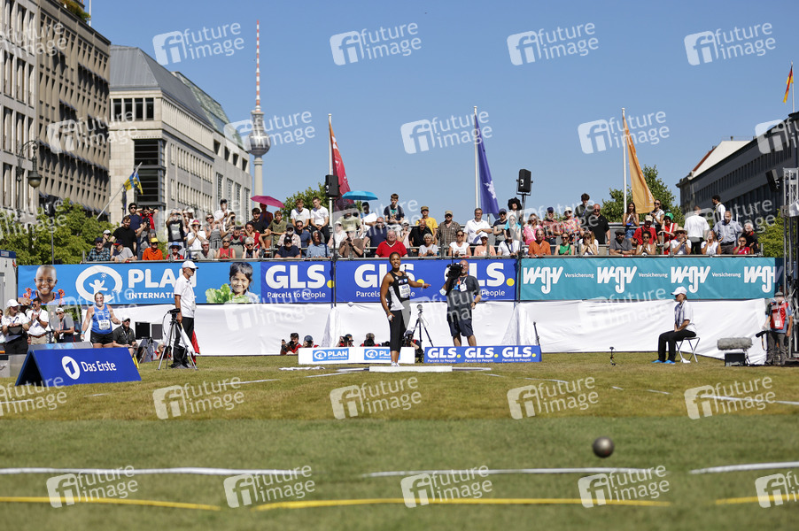 Yemisi Ogunleye beim Sportevent Die Finals - Berlin 2022 mit der Leichtathletik Disziplin Kugelstoßen Frauen vor dem Brandenburger Tor. Berlin, 23.06.2022