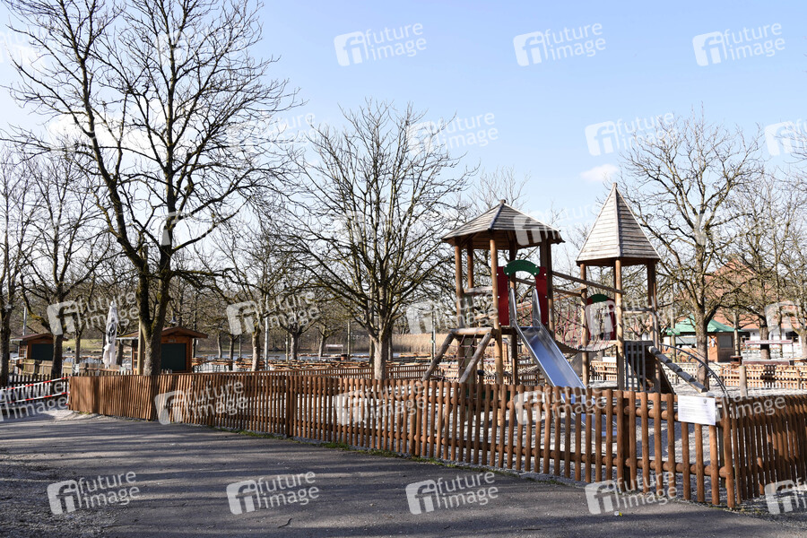 Spielplatz, Kinderspielplatz, Biergarten, menschenleer, Virus, Viren, Corona, Sars-CoV-2, Covid-19, Coronavirus, Coronaviren, Corona-Virus, Corona-Viren, Ansteckung, Ansteckungsgefahr, Epidemie, Pandemie, Infektion, Infektionen, Coronavirus-Fall, Coronavirus-Fälle, Corona-Fall, Corona-Fälle, Corona-Hysterie, Corona-Angst, Ansteckungsangst, Seuche, Corona-Test, Corona-Tests, Coronatest, Coronatests, anstecken, Corona-Symptome, Symptom, Symptome, Krankheit, Krankheitsbild, Krankheitsverlauf, infiziert, infizieren, Vorbeugung, Prävention, schützen, Schutz, Ausnahmezustand, Ausgangssperre, Risiko, Risikobewertungen, Maßnahmen, Neuansteckungen, Todesrate, Coronamaßnahmen, Corona-Infektion, Corona-Infektionen, Corona-Schutz, Symbolfoto, Symbolbild