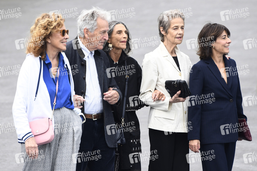 Michele Ray-Gavras, Costa- Gavras, Angela Molina, Charlotte Rampling und Marilyne Canto nach dem Photocall zum Kinofilm 'Le dernier souffle / Last Breath' auf dem 72. Internationalen Filmfestival San Sebastian / Festival Internacional de Cine de San Sebastián auf der Kursaal Terasse. San Sebastian,