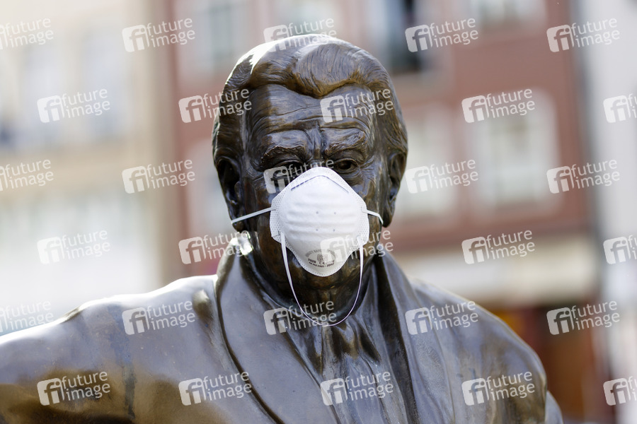 Willy-Millowitsch-Denkmal mit Mundschutz