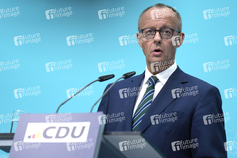 Friedrich Merz bei der Pressekonferenz der CDU zur Landtagswahl in Brandenburg im Konrad-Adenauer-Haus. Berlin, 23.09.2024