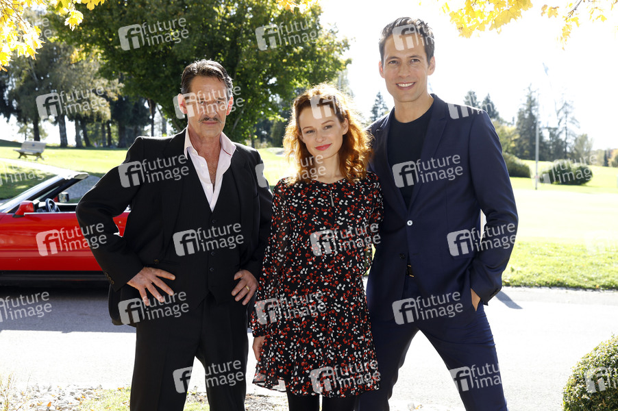Max Tidof, Lilian Naumann und Alexander Mazza beim Fototermin zur ARD-Vorabendserie 'Watzmann ermittelt' am Münchener Golf Club. Straßlach-Dingharting, 16.10.2019