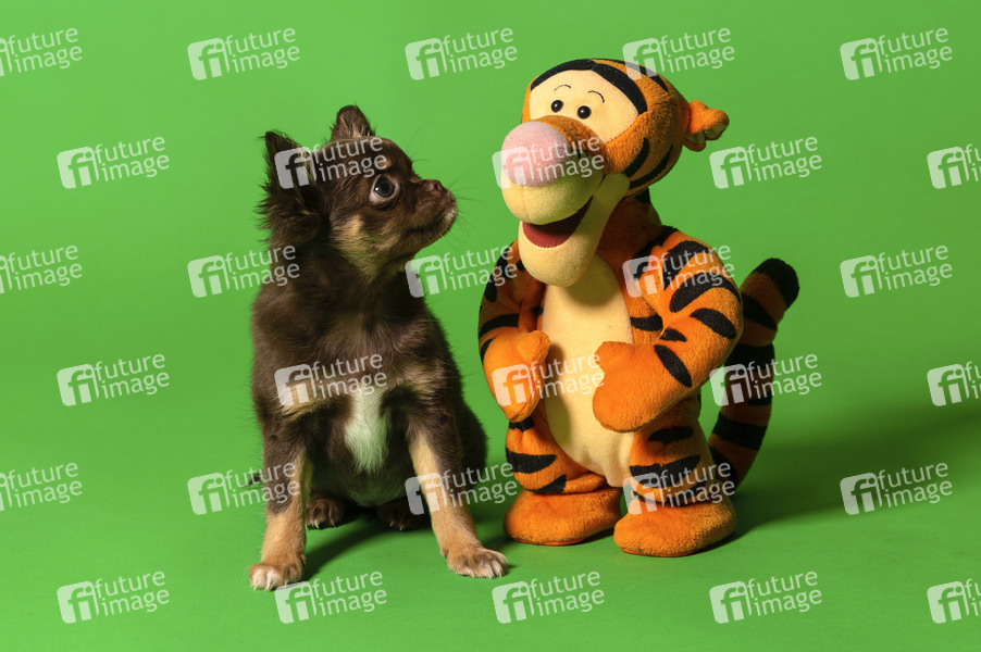 Chihuahua Buffy mit Tigger bei einem Fotoshooting im Fotostudio Schubert. Niedernwöhren, 20.03.2019