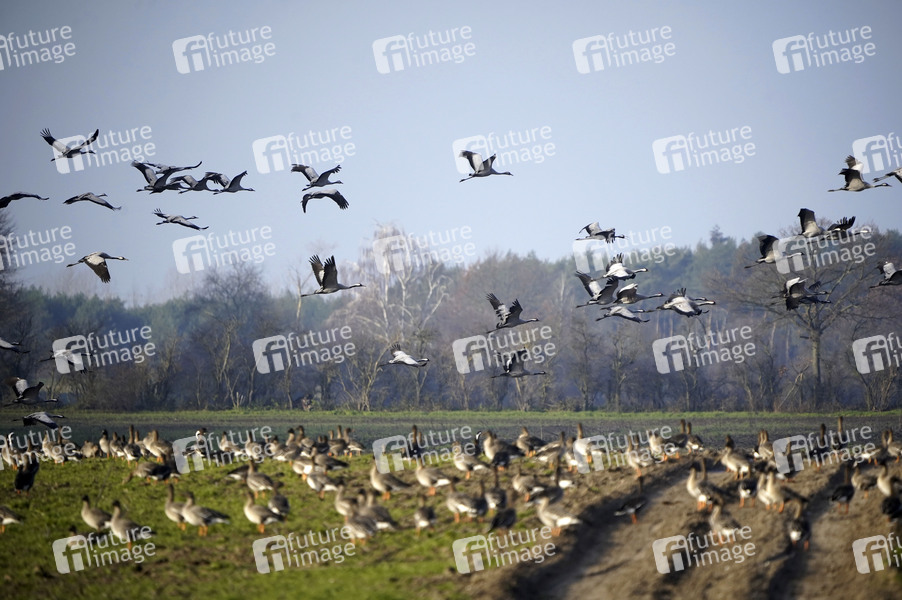 Kraniche und Wildgänse auf einem Feld Werben, 30.11.2019