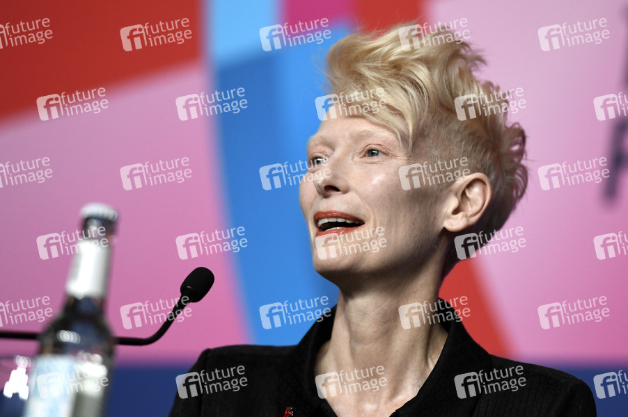 Tilda Swinton bei der Pressekonferenz zur Verleihung des Goldenen Ehrenbären auf der Berlinale 2025 / 75. Internationale Filmfestspiele Berlin im Hotel Grand Hyatt. Berlin, 14.02.2025