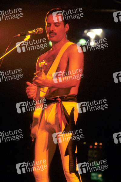 Freddie Mercury von Queen live bei einem Konzert der 'Works'-Tour in der Wembley Arena. London, 07.09.1984