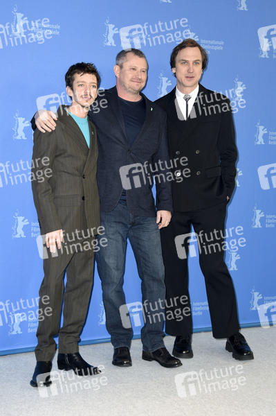 Nahuel Perez Biscayart, Vadim Perelman und Lars Eidinger beim Photocall zu 'Persian Lessons' auf der Berlinale 2020 / 70. Internationale Filmfestspiele Berlin im Hotel Grand Hyatt. Berlin, 22.02.2020