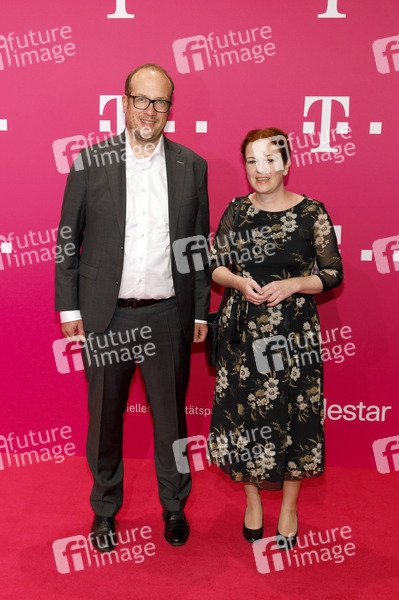 Katja Dörner mit Ehemann Till Winkelmann bei der Uraufführung der mittels Künstlicher Intelligenz vollendeten 10. Sinfonie von Ludwig van Beethoven nach Notizen des Komponisten im Telekom Forum. Bonn, 09.10.2021