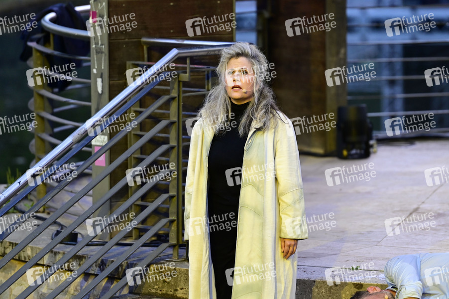 Michaela Schaffrath bei der Generalprobe zum Theaterstück 'Jedermann' am Pavillon im Weimarhallenpark. Weimar, 10.07.2024