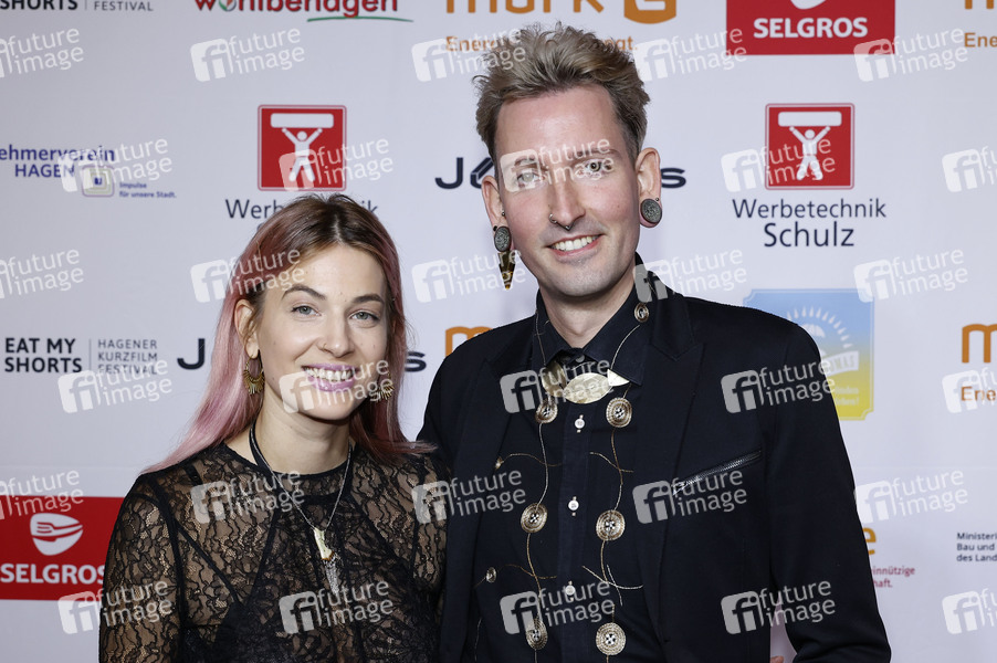 Fabian Kahl mit seiner Verlobten Yvonne Arnolds bei der Eröffnung vom 11. Eat My Shorts - Hagener Kurzfilmfestival 2024 in der Stadthalle. Hagen, 16.11.2024