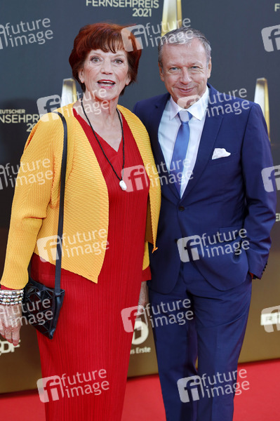 Regina Ziegler mit Begleitung bei der Verleihung des Deutschen Fernsehpreises 2021 im Tanzbrunnen. Köln, 16.09.2021