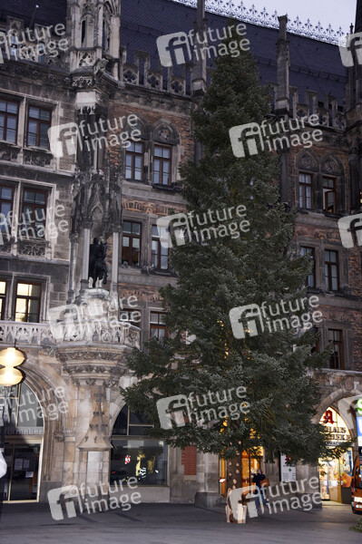 Aufstellung des Christbaums aus Steingaden auf dem Marienplatz vor dem Rathaus. München, 25.11.2020