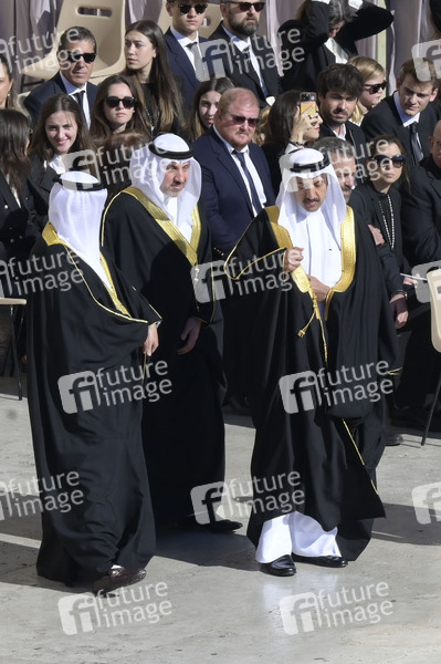 Nawaf Mohamed Hamad Saqer Almouada, Shaikh Abdulla Ahmed Abdulla AlKhalifa und Essam Abdulaziz Aljassim bei der Trauermesse für den verstorbenen Papst Franziskus auf dem Petersplatz. Vatikanstadt, 26.04.2025