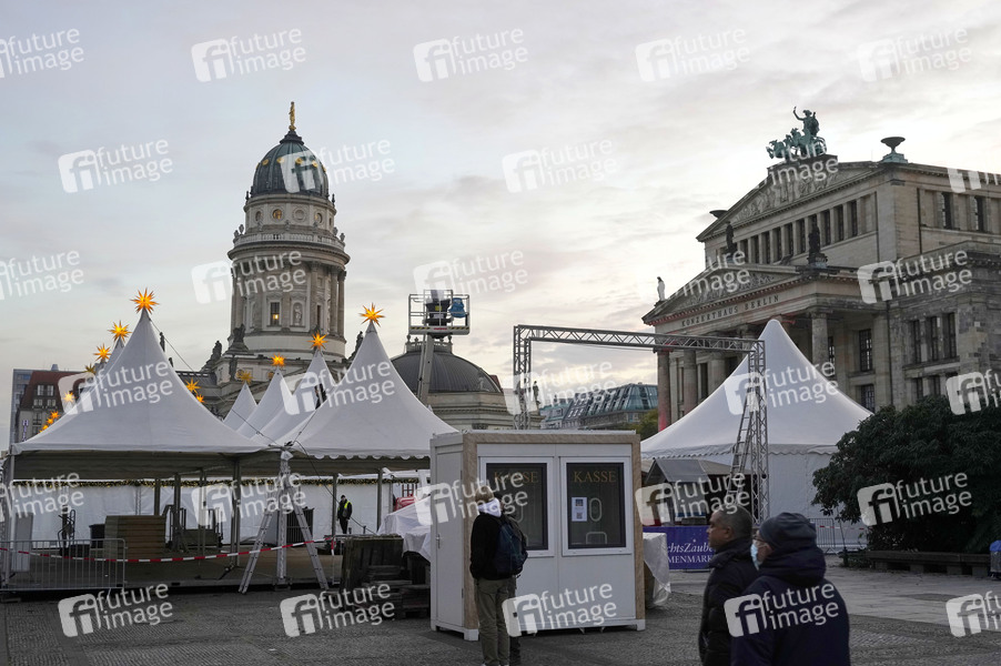 Aufbau vom Weihnachtsmarkt 'WeihnachtsZauber Gendarmenmarkt'. Berlin, 13.11.2021