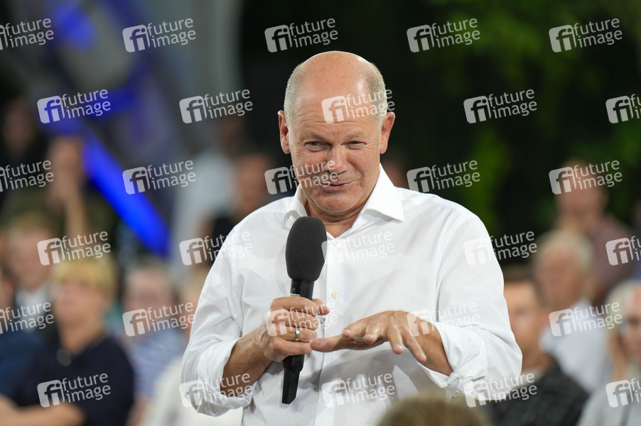 Olaf Scholz beim Kanzlergespräch mit Bürgern in der ufaFabrik. Berlin, 04.09.2024