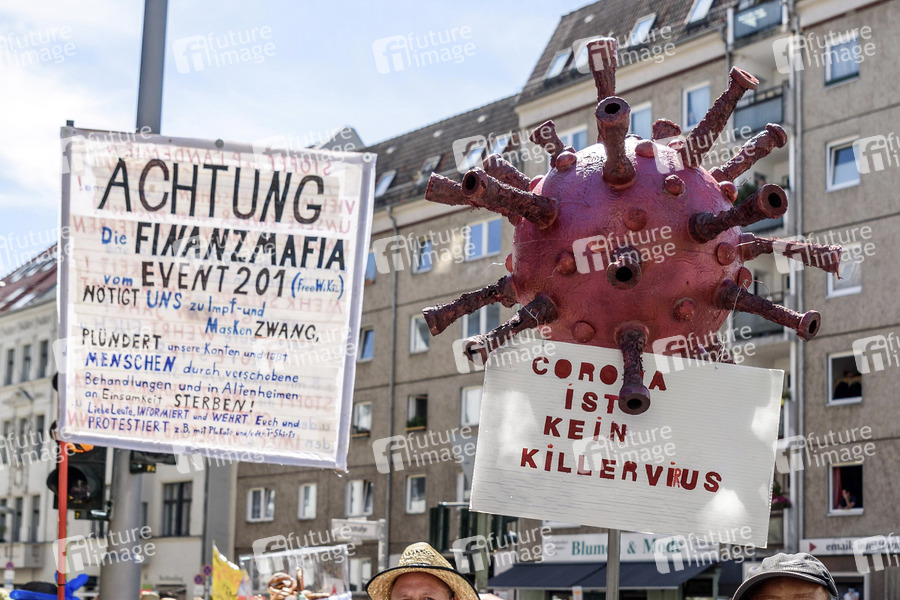 Demonstrationen von Corona-Leugnern unter dem Motto 'Der Tag der Freiheit - Das Ende der Pandemie' gegen die bestehenden Corona-Maßnahmen in Berlin. Wegen Nichteinhaltung der Hygiene- und Abstandsregeln wurde der Protest vorzeitig beendet. Berlin, 01.08.2020