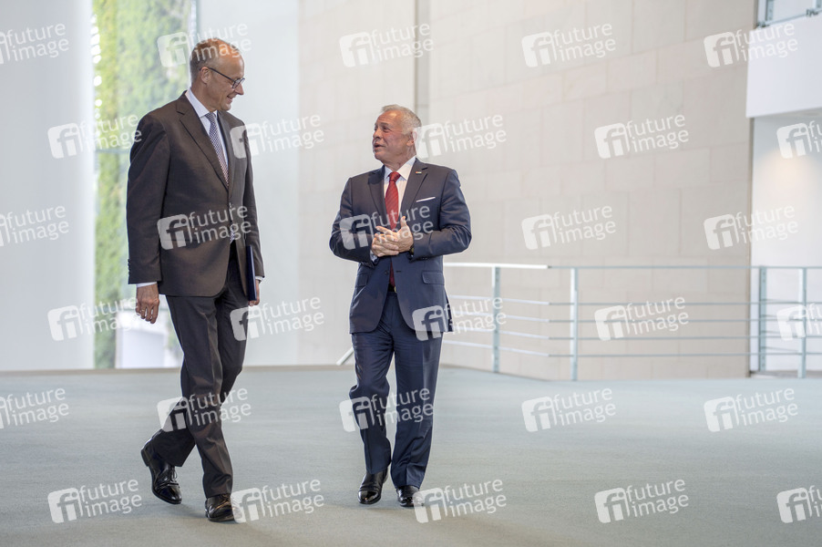 Friedrich Merz und Abdullah II. bin al-Hussein beim Empfang des Königs von Jordanien mit militärischen Ehren zu einem gemeinsamen Gespräch mit anschließendem Pressestatement im Bundeskanzleramt. Berlin, 29.07.2025