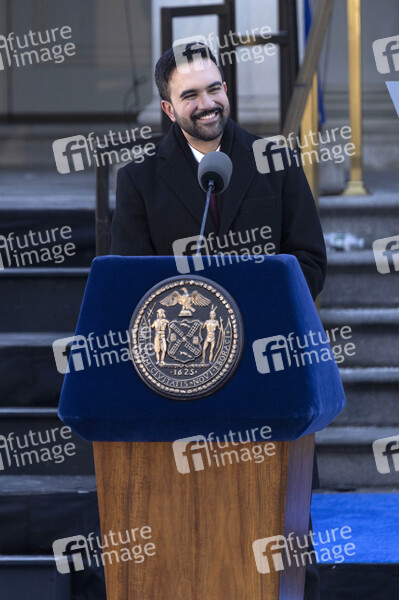 Zohran Mamdani bei der Amtseinführung des ersten muslimischen Bürgermeisters von New York City in Rathaus. New York, 01.01.2026