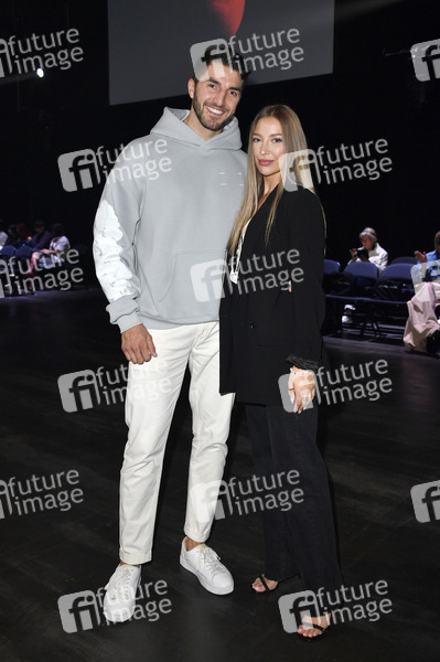 Dennis Gries und Katja Geretschuchin bei der Rebekka Ruetz Fashion Show 'Black Sun' auf der Berlin Fashion Week S/S 2025 in der Uber Eats Music Hall. Berlin, 03.07.2024
