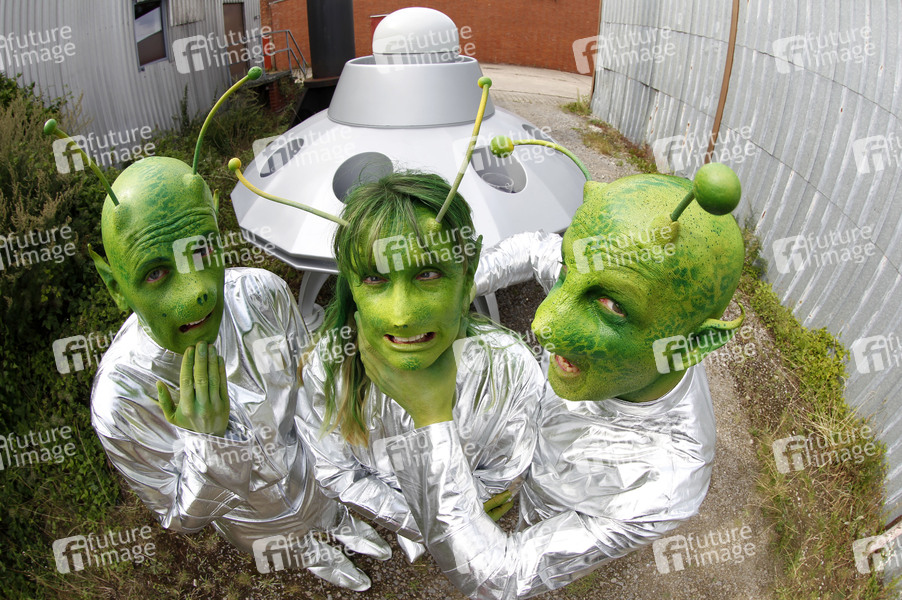 Bodypainting, Body-Painting, Cosplay, Cosplayer, Körperkunst, Körperfarben, Farbe, Bemalung, Kunst, Make-up, Latexapplikationen, Maskenbildnerei, unbekanntes Flugobjekt, Außerirdische, fliegende Untertasse, Raumschiff, fremde Wesen, Landung, Invasion, Science Fiction, body painting, body art, latex applications, unknown flying object, spacecraft, flying saucer, alien, strangers, landing, colors